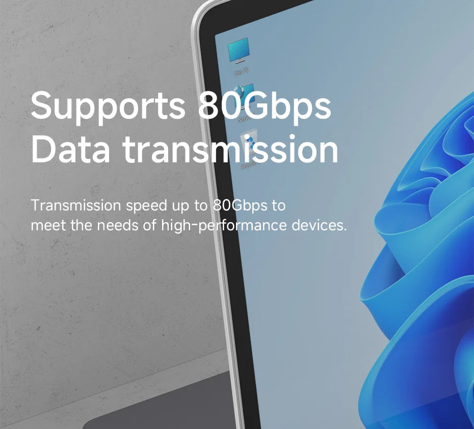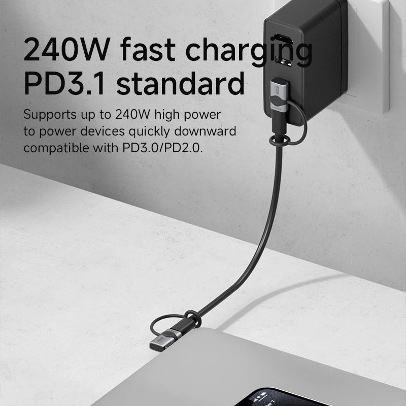 【Multifunctional design】Supports up to 40 Gbps data transfer;Supports up to 240W fast charging while backward compatible with PD 3.0 and 2.0;Supports 8K 60Hz video transmission(Requires device support for DP video transmission protocol)