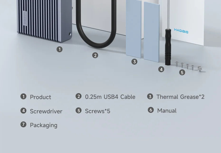 Large Alloy Fins Design: Hagibis USB4 M.2 SSD Case with alloy body and finned heat dissipation plate enable SSD to operate at low temperatures, eliminating noise from fans, providing stronger heat dissipation and more stable operation