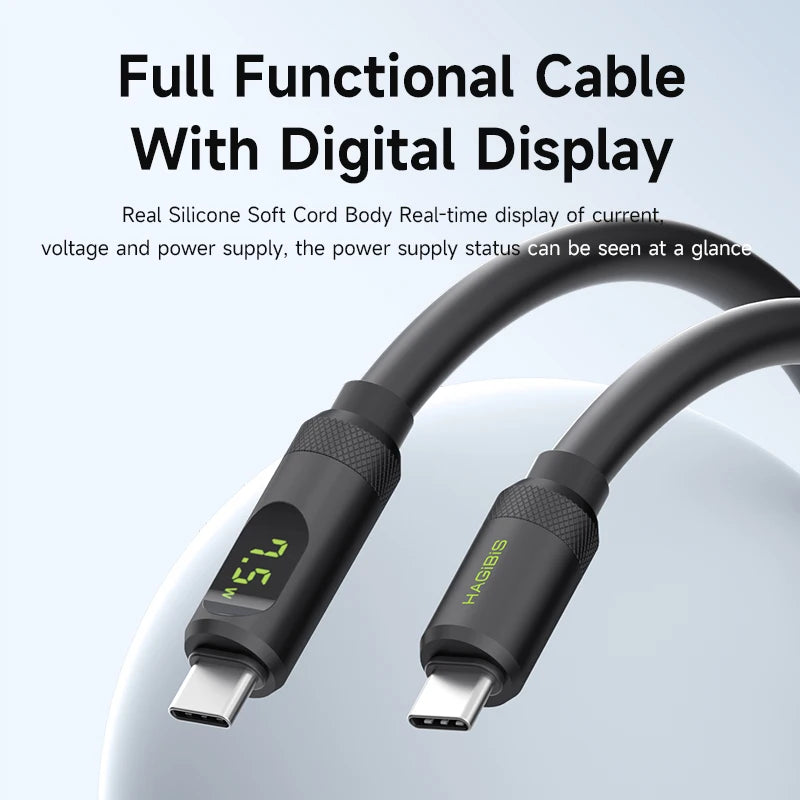 Included USB4 LED Display Cable: The packaging of the Hagibis MC40 contains a 40Gbps 240W 8K@60Hz USB4 LED Display Cable, real silicone flexible cable that displays real-time current, voltage, and power supply, and the power supply status is clear at a glance