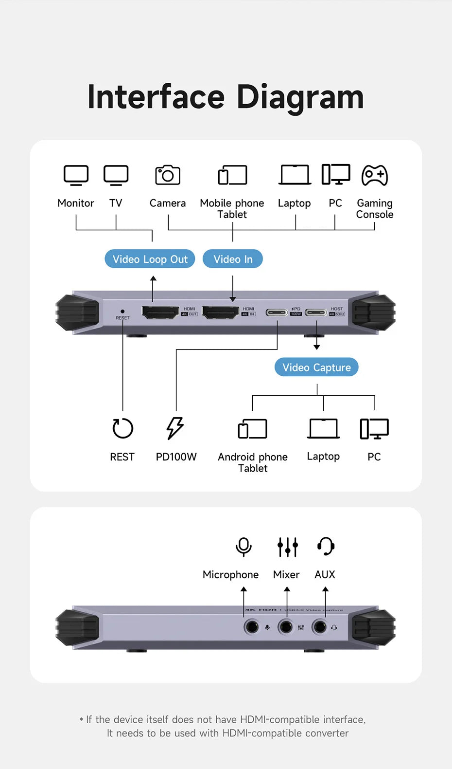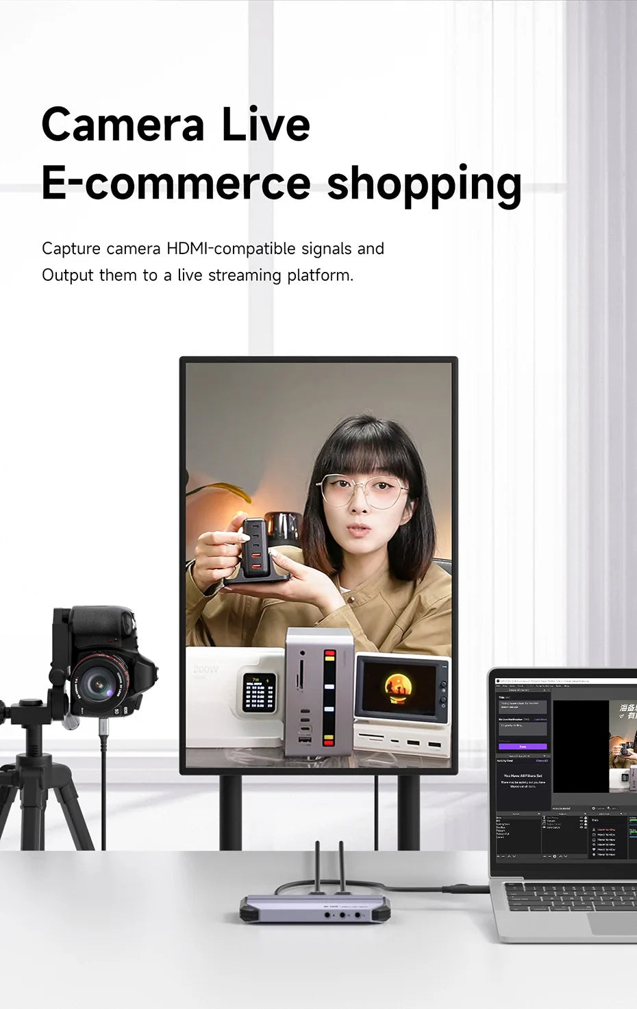 Plug & Play: As a no driver required portable 4K HDMI-Compatible video capture card, it can be used without drivers and external power supply. so you can use the built-in functions of the current software to get a seamless experience. And the capture card is small size & easy to carry, no problem for outdoor and indoor live broadcasting