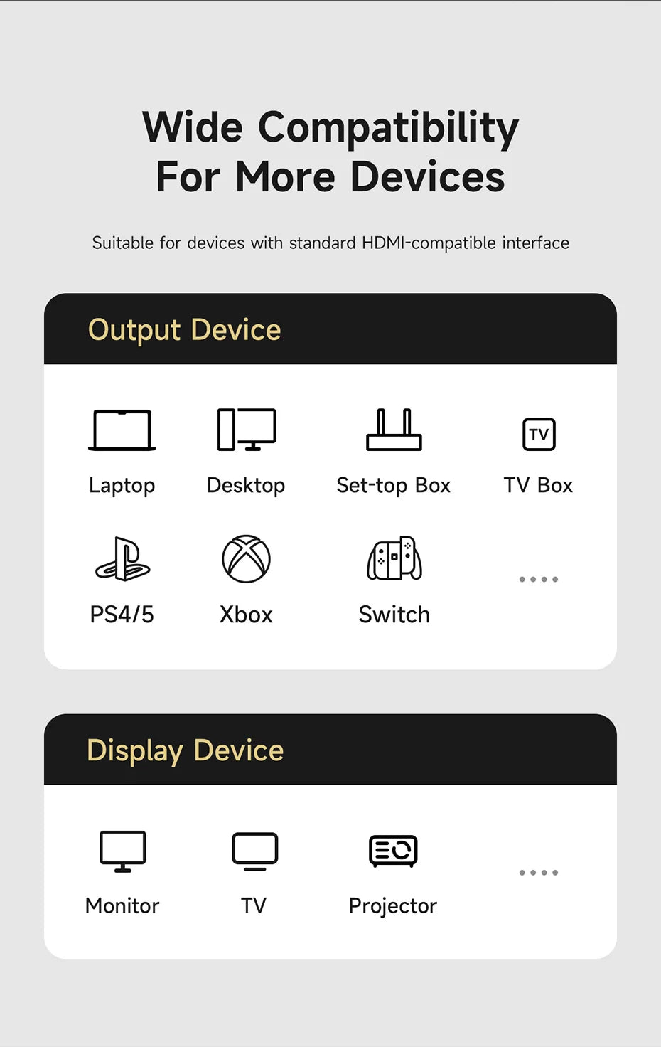 Hagibis 8K HDMI-Compatible Cable High Speed Cord 4K 240Hz 2K 360Hz 8K 60Hz Compatible with Roku TV/PS5/HDTV/Xbox/Switch/Laptops