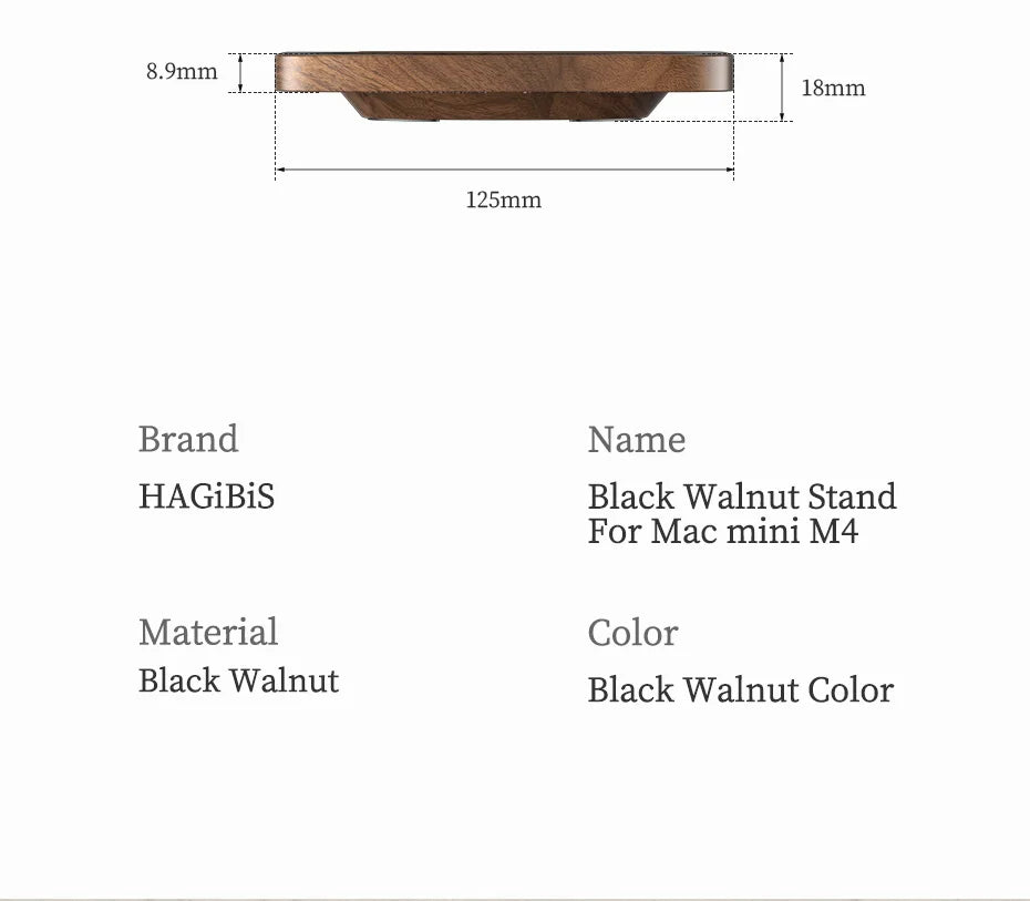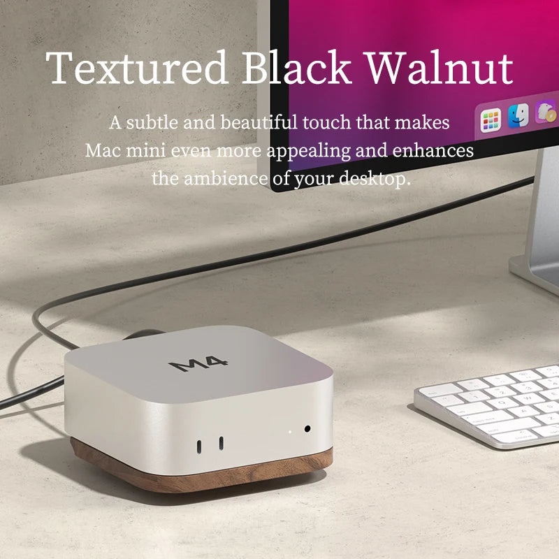 Textured Black Walnut:Solid Wood Stand for Mac mini M4 ,Ventilated for heat dissipation, with pre-drilled holes for power on and off