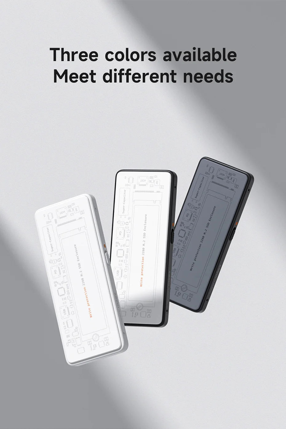Write Protect Key: Hagibis MC200 SSD Case has one key push and pull to turn on and off, after turning on the Write-protect function, the files in the ssd can only be read, can not be modified or written, to prevent the files from being damaged or infected with viruses