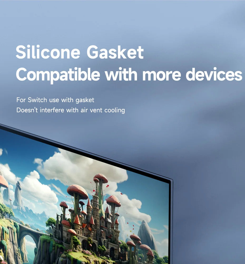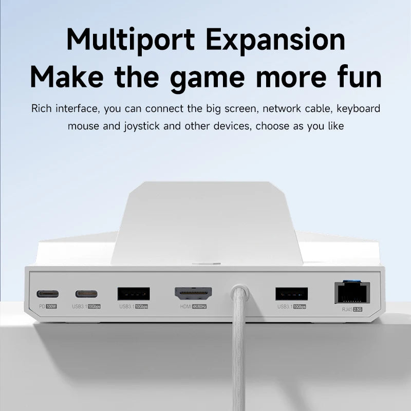 Widely Compatible:This docking station supports the use of handheld consoles such as ROG Ally/Steam Deck/Switch, and it can also support cell phones that support DP video protocols.Note: Because of the size, the switch and cell phone need to be used with the silicone pad that comes with the product.
