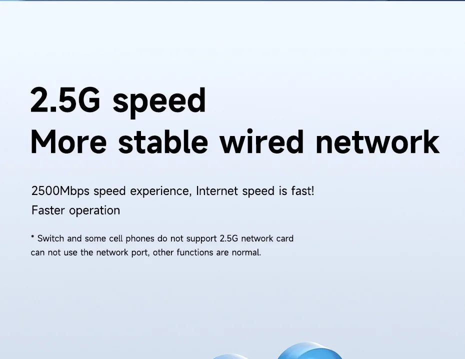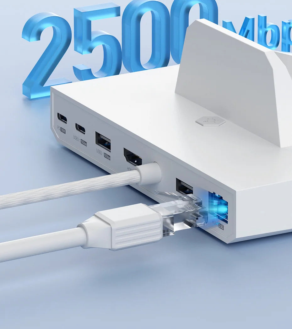 2.5G Ethernet Port:Support up to 2500Mbps network transmission, more stable than WIFI, so that your game operation is more smooth.Note:Switch and cell phone can not use this network port, other ports can be used normally.