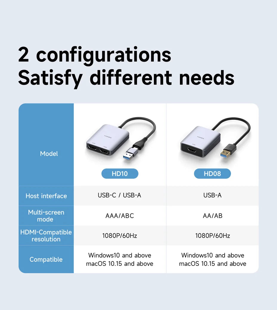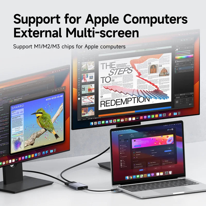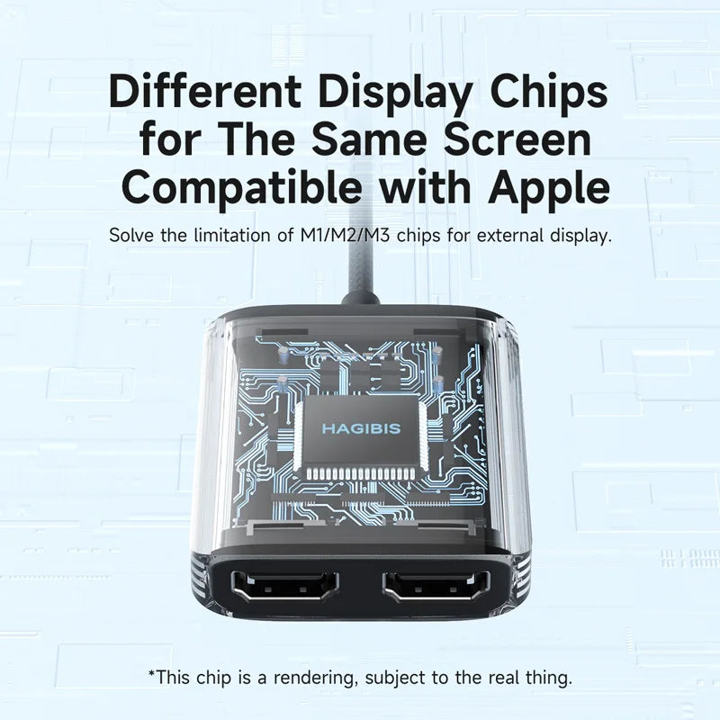 Compatible with M1/M2/M3 computer chips: it provides a display expansion solution for Apple devices, with dual HDMI-compatible outputs that can connect two additional displays at the same time for a triple display.