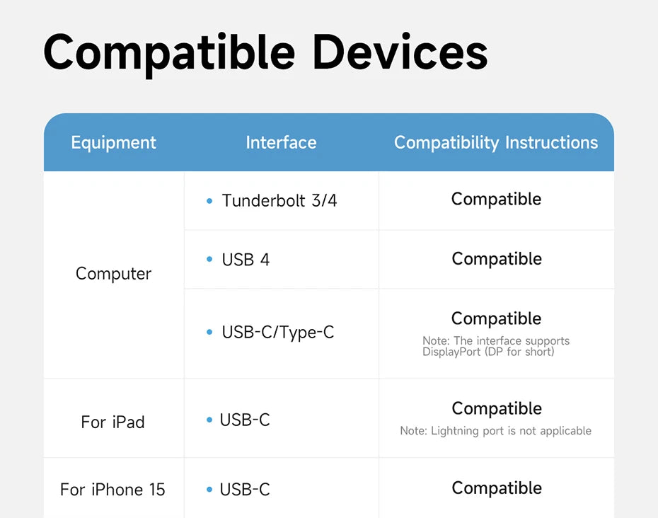 240W Fast Charging: Hagibis USB 4 cable supports charging speeds of up to 240W (48V 5A). The USB C to USB C cable can charge any Type-C device, from smartphones to laptops. It is compatible with the PD3.1 fast charging protocol and supports backward compatibility with PD3.0/2.0. And also compatible with 140/100/60W power devices. Charge USB C devices from phones to laptops