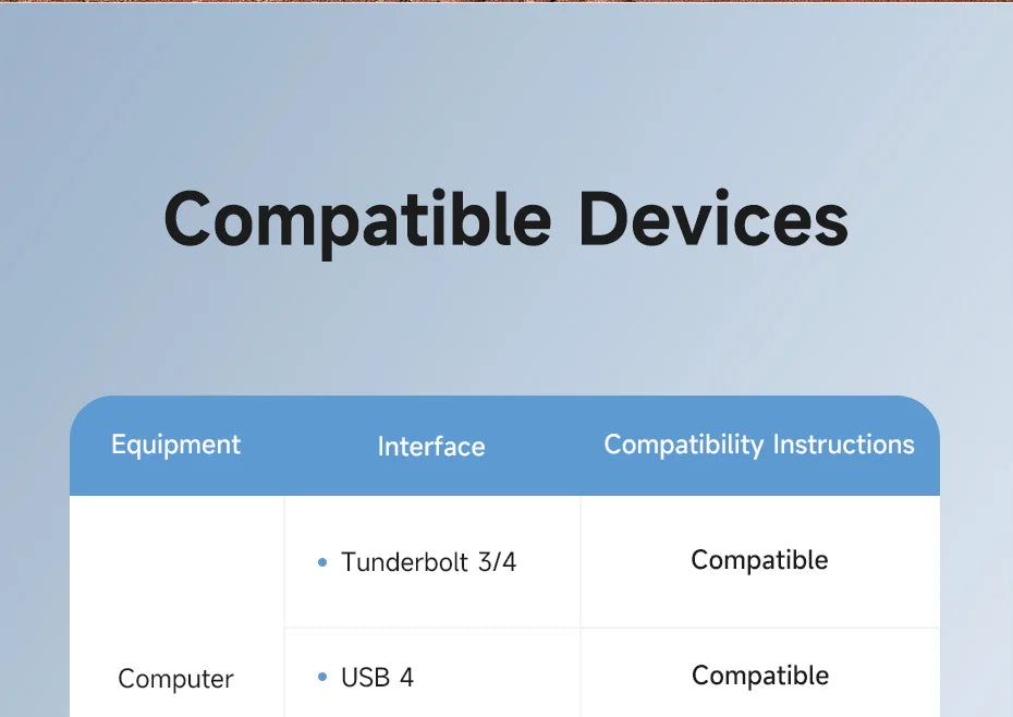 40Gbps Data Transfer and 8K Video Output: Compared with USB 3.0 (5Gbps), This cable has an incredible increase in data transfer speed.It can also support video transmission at up to 8K 60Hz and is backward compatible with 4K.Note: Your device needs to support DP video transmission protocol