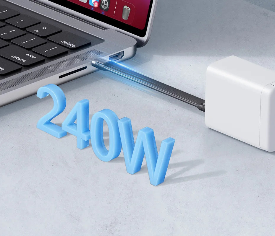 PD High-Speed Charging: Built-in E-marker chip, PD 3.1 standard supports 240W fast charging, while it is backward compatible with PD3.0 and 2.0 protocols,Supports high power output of up to 48V5A.